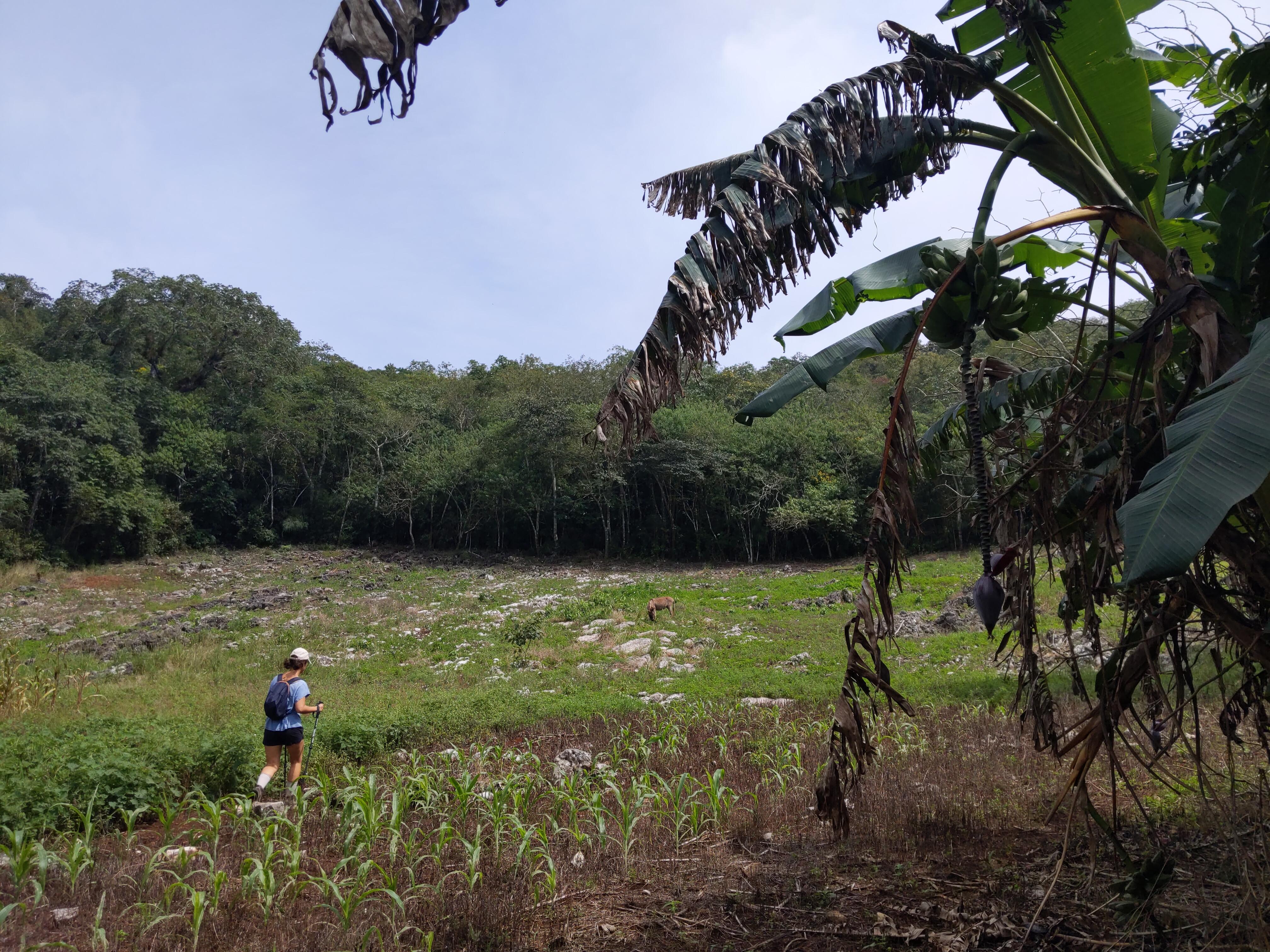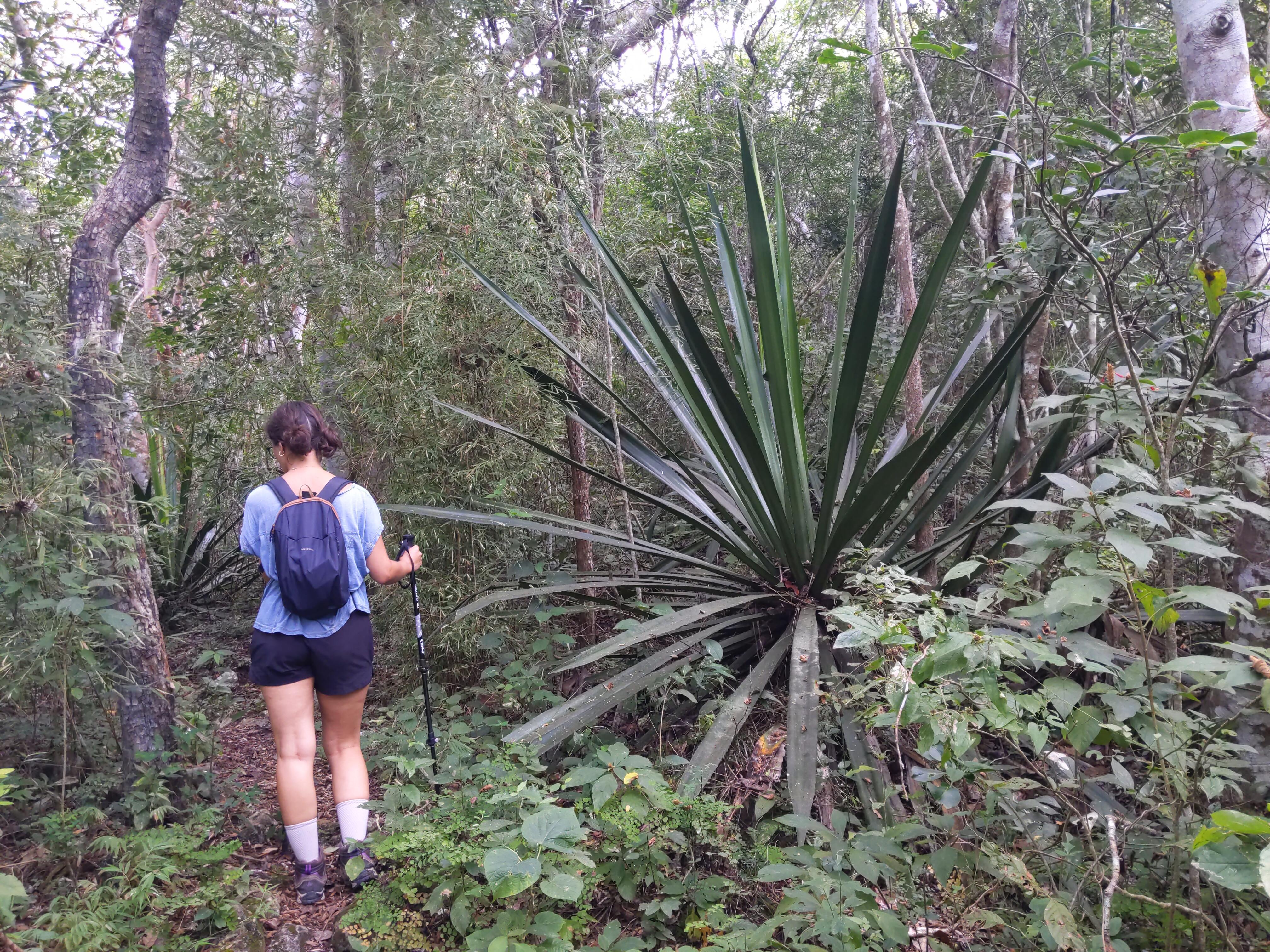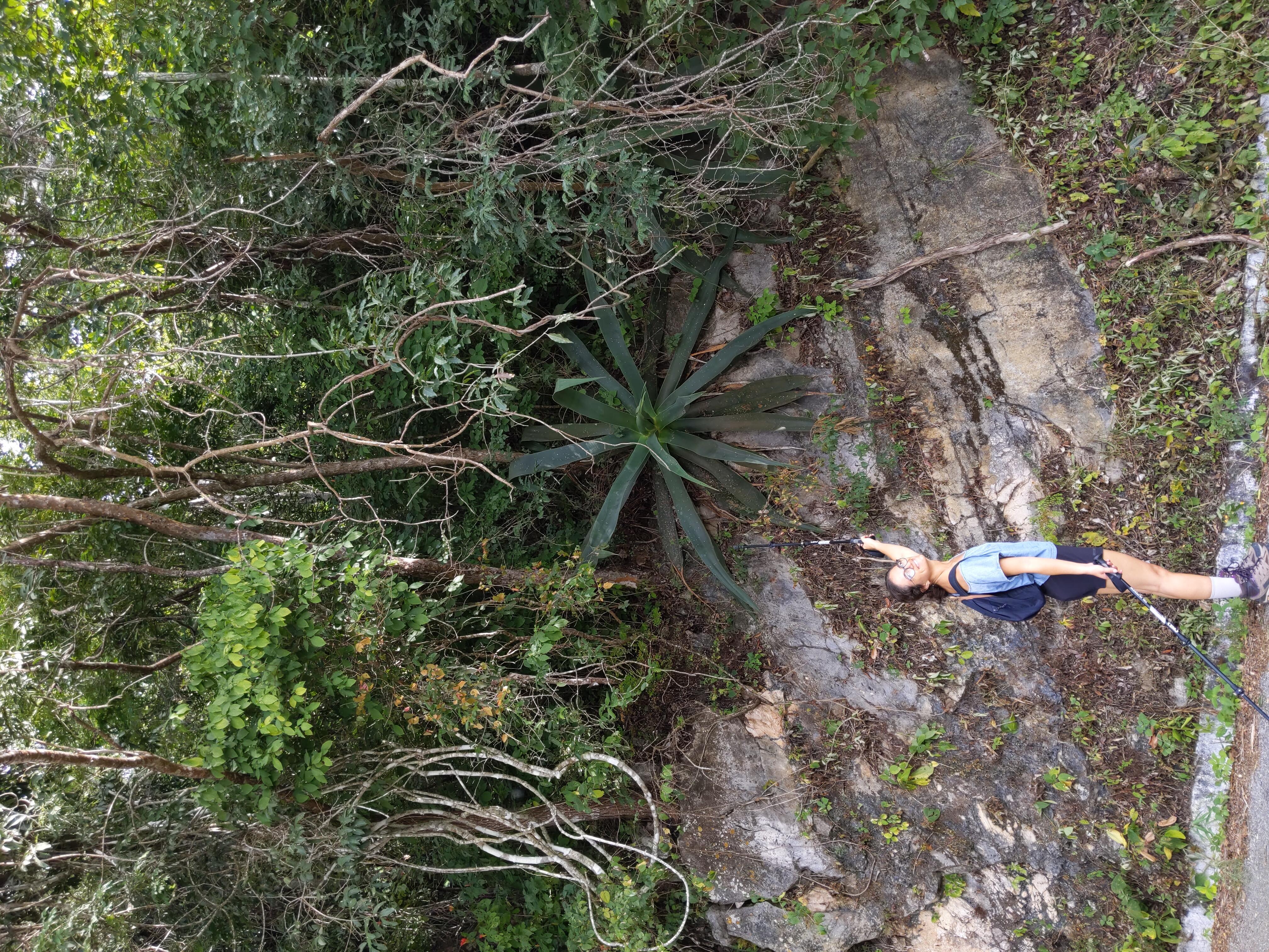 Nous commençons ensuite l'ascension, il est 8h et il fait déjà bien chaud, on mouille le maillot. Le début du sentier est bien balisé puis, sur 1km, nous devons longer la route, mais il n'y a presque aucun passage donc ce n'est pas gênant. Après la route, nous nous enfonçons de plus en plus dans la forêt. En chemin, nous entendons du bruit dans les fourrés. Un homme est là, à faire on ne sait trop quoi. Il nous demande l'heure puis una monedaune petite pièce. Ce sera le seul humain que nous rencontrerons sur tout le chemin.