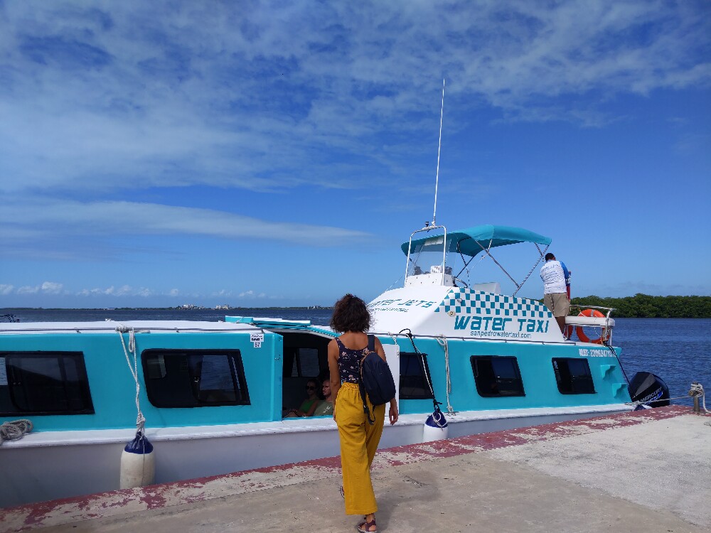 C'est un petit bateau mais avec un gros moteur. Le trajet est assez mouvementé, ça secoue dans tous les sens et ça fait beaucoup de bruit. Mais on arrive en un seul morceau à San Pedro, la ville dont parlerait Madonna dans la chanson La Isla Bonita. Nous ne faisons ici qu'un arrêt à la douane bélizienne avant de poursuivre notre route sur le même bateau.