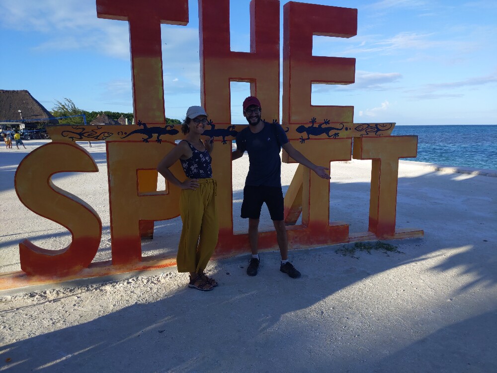 Puis nous pédalons un peu plus vers le nord, vers un endroit nommé The Split, la séparation. Il y a 20 ans, un ouragan dévastateur a séparé Caye Caulker en deux, au sud la partie sur laquelle nous sommes, Caye Caulker South et au nord, Caye Caulker North, une partie préservée de l'urbanisation grâce à cet ouragan.