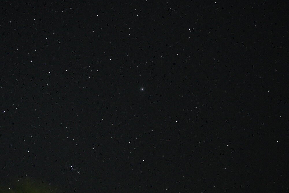 Le ciel étoilé, avec Jupiter au milieu.